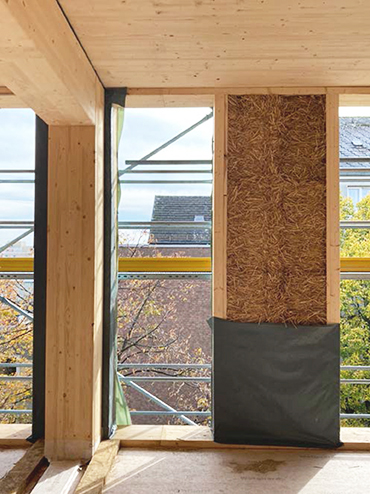 Bearbeitete Leistungsphasen: Vorentwurf, Entwurf, Genehmigungsplanung, Erstellung von konzeptionellen Leitdetails der Holzkonstruktion und des Strohballenbaus.